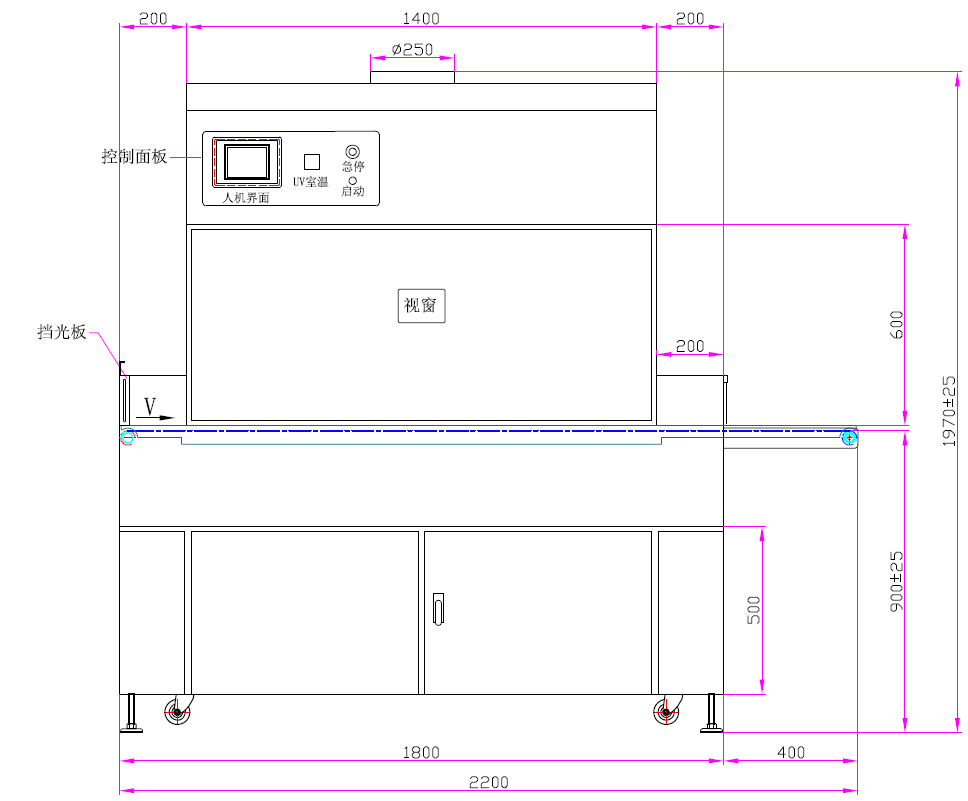 | 5、鈑金燈箱安裝進口插片反射器 | 6、UV燈垂直高度可電動調節(只限上燈) |