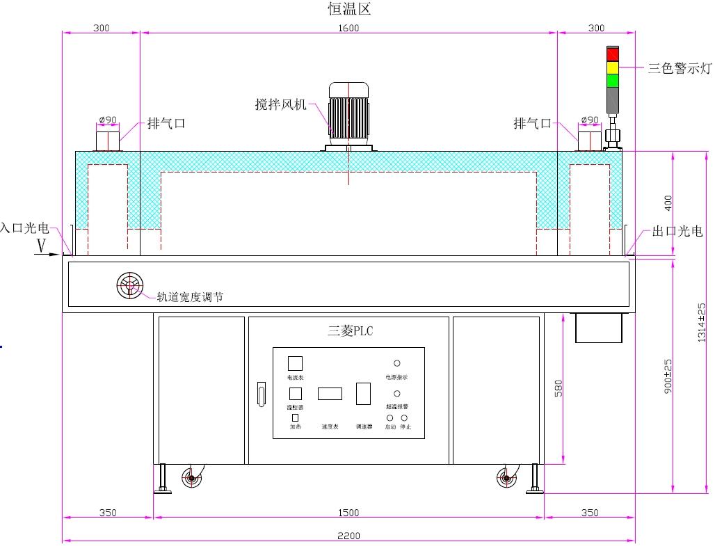 | 2、發熱管安裝在工件上方 | 3、采用無級調速(速度表直接讀數) |