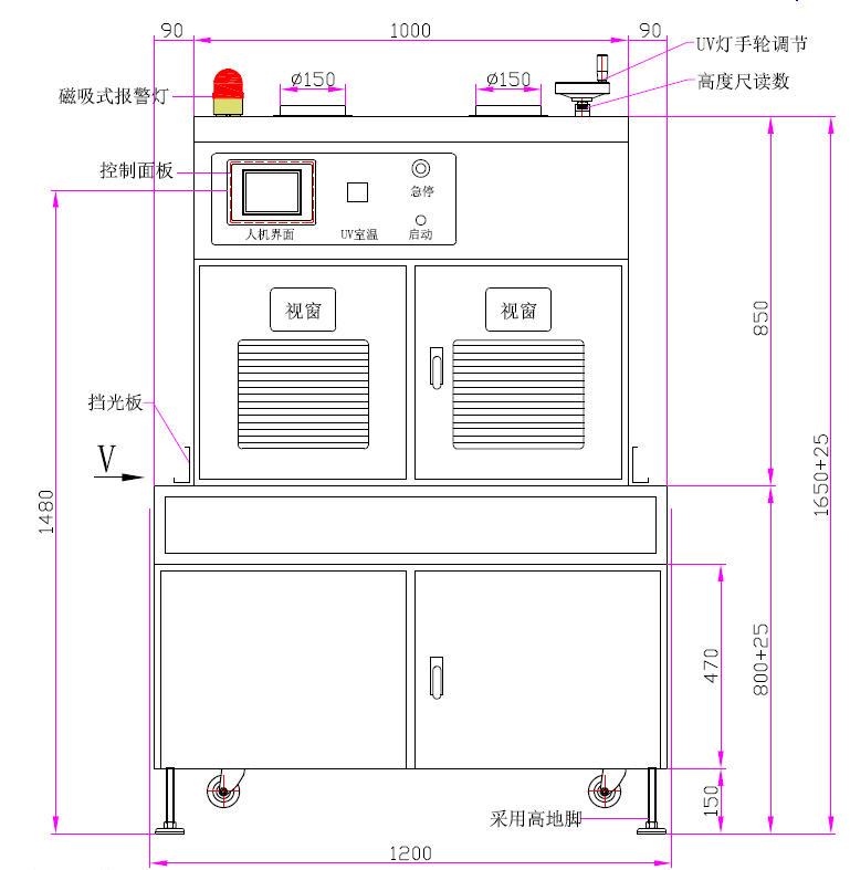 | 1、UV燈功率:5.0kw*2支(進口燈) | 2、UV燈總長:660mm、弧長:550mm |