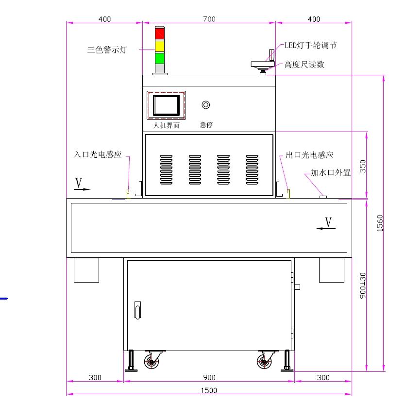 | 9、輸送寬度:300~350mm(可調) | 10、輸送速度:0~5m/min |